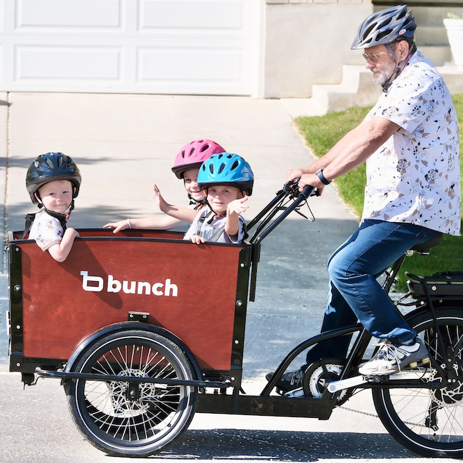 Skip the traffic. Soar past the carpool line. Fill up on giggles, not gas. It's the minivan of cargo bikes - a school running, kid hauling, grocery getting, playground cruising, life changing joy machine from Bunch Bikes!
